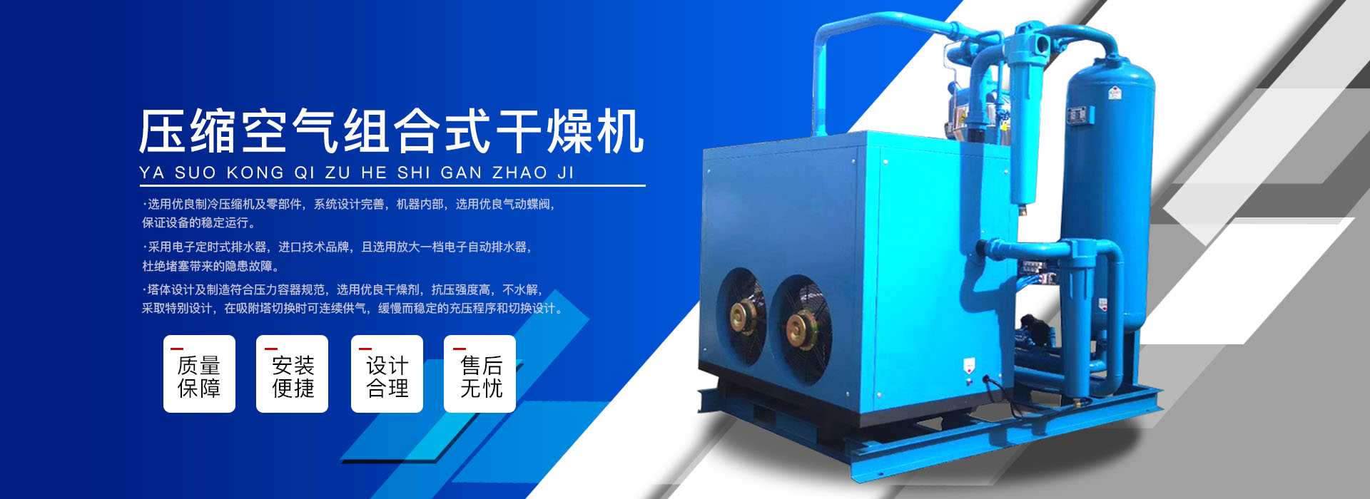 本公司系中國科學院、重鋼院、機電技術設計院、氣動技術研究所等相關專家合作的具有雄厚技術力量的高科技實體,是一個專業(yè)從事各種氣體干燥凈化及分離純化設備研究開發(fā)及推廣應用的高科技公司。公司積多年對壓縮空氣凈化設備的生產技術和銷售經(jīng)驗,并在消化吸收國外先進技術的基礎上,結合國內實際工況特點,研制出適合國內外廣大用戶的“滬盛”牌HSD系列壓縮空氣冷凍式干燥機、吸附式干燥機、后部冷卻器、預冷機組、工業(yè)用冷水機組和HF系列壓縮空氣高效精密過濾器(國產濾殼,美國漢克森HANKISON濾芯)等13大系列計300多種規(guī)格產品。并且新研發(fā)出燥式干器, 廣泛應用于電力、冶金、電子、機械、石油、化工、汽車制造、紡織、化纖、輕工、造紙、橡膠、儀表、食品、空氣、卷煙、生物、醫(yī)藥、日化等行業(yè),在國內同行業(yè)中一直處于領先地位。